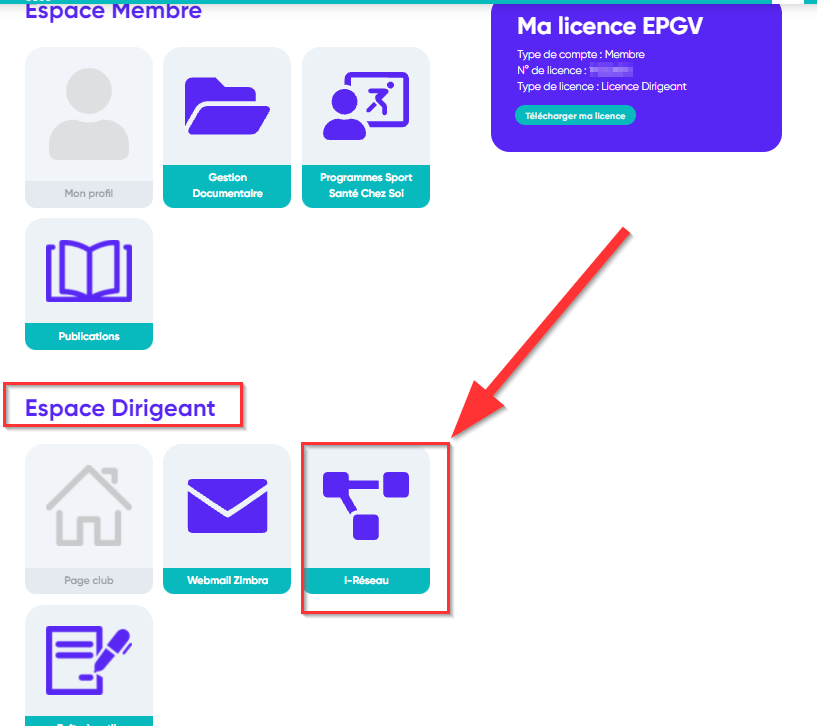 Dans l'Espace Dirigeant, accessible uniquement au licences Dirigeant ou Animateur Dirigeant qui ont été liée dans le Portail