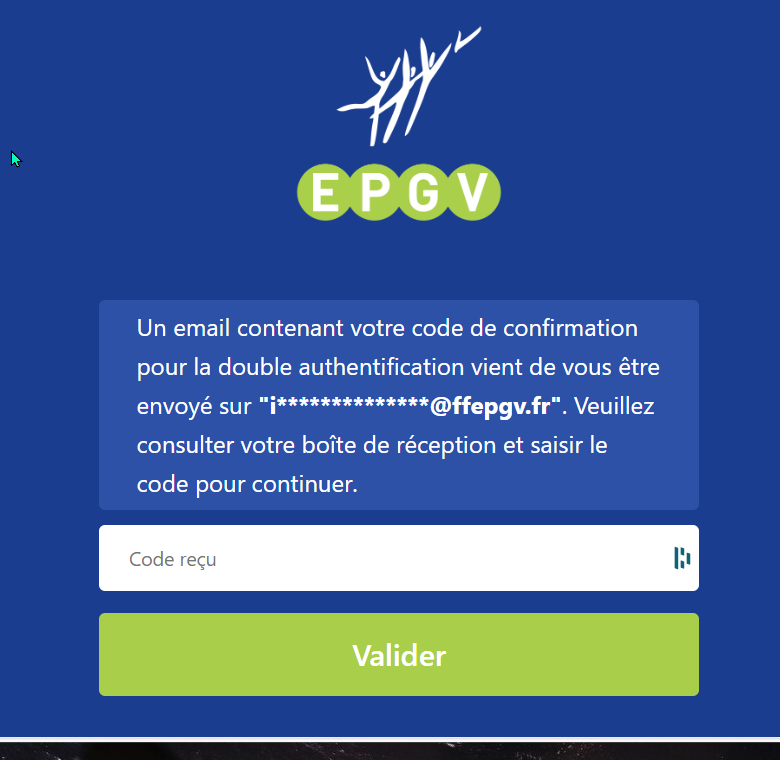 Il faut récupérer ce code dans l'email qui a été envoyé et le copier sur l'écran (Code reçu) qui s'affiche alors.