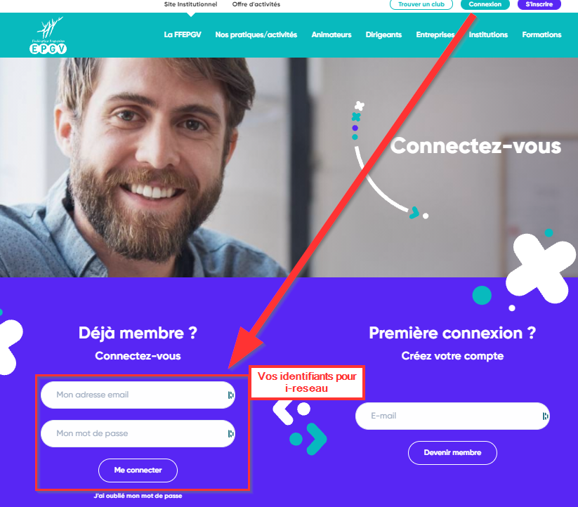 Les accès à i-Réseau sont : - personnel/nominatifs, - se font avec l'email personnel indiqué dans la fiche de licencié, - ne se partagent pas, - ne se transmettent pas de dirigeant de club à successeur. |